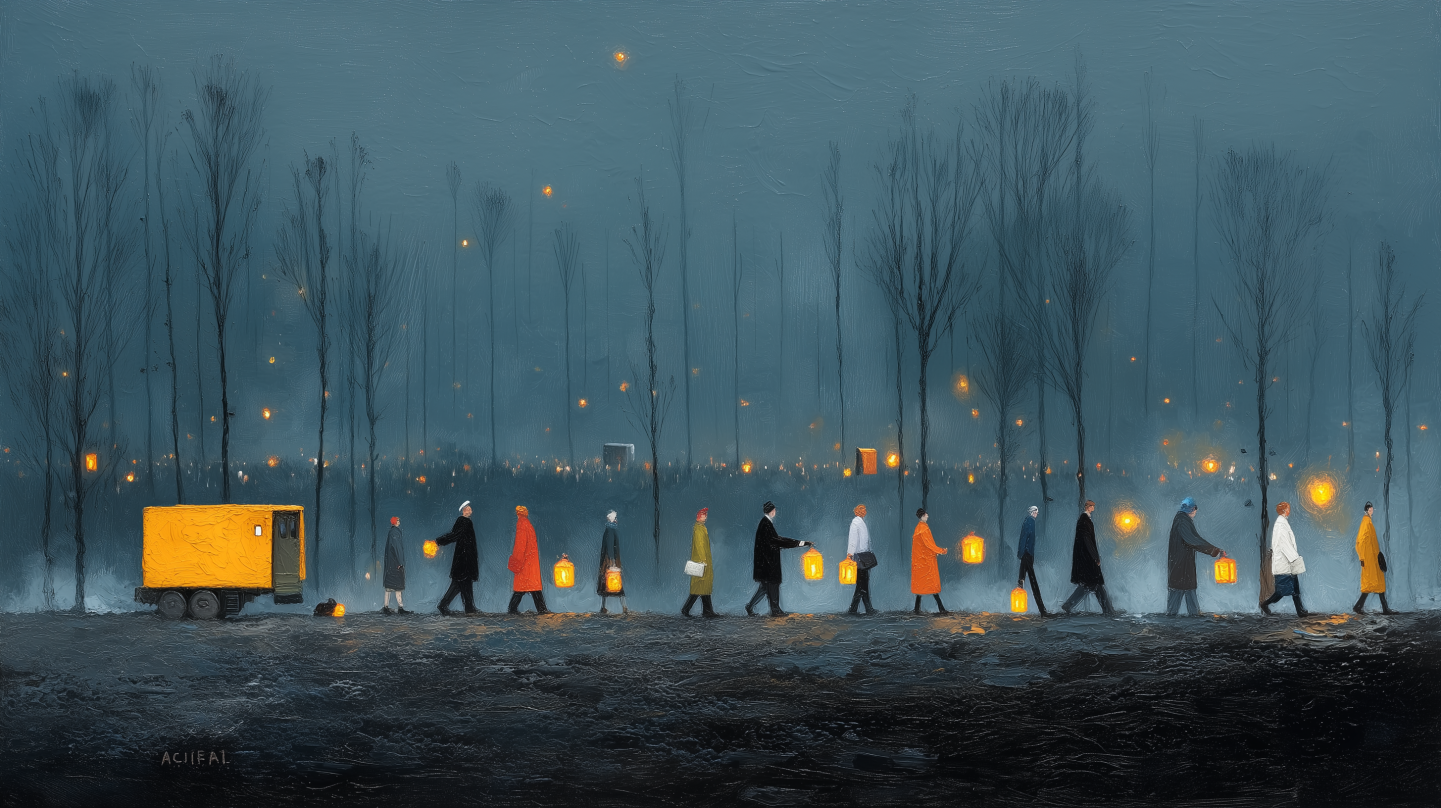 The image beckons us to ask: what light am I bringing, and how might it join with others to make freedom visible where shadows have fallen? It suggests that the work of illuminating the way forward is not the task of one, but the shared offering of many.